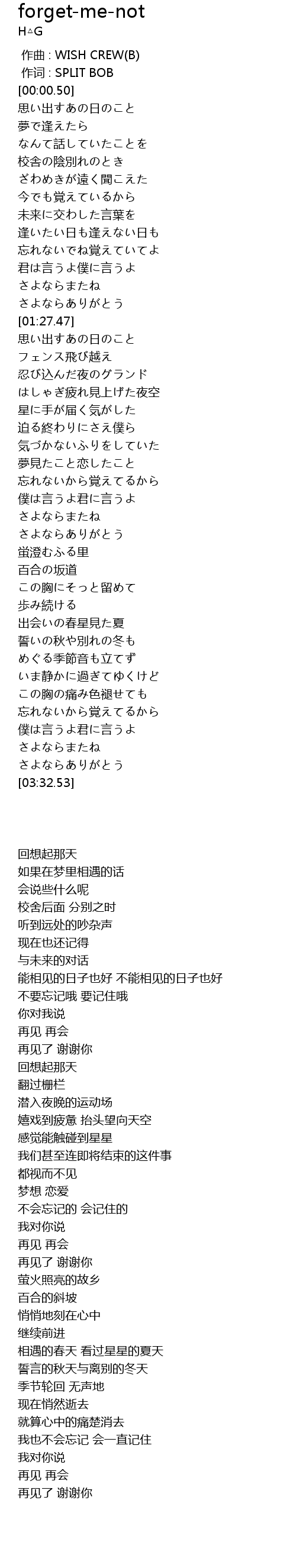 | [01:09.01] | 忘れないでね覚えていてよ |