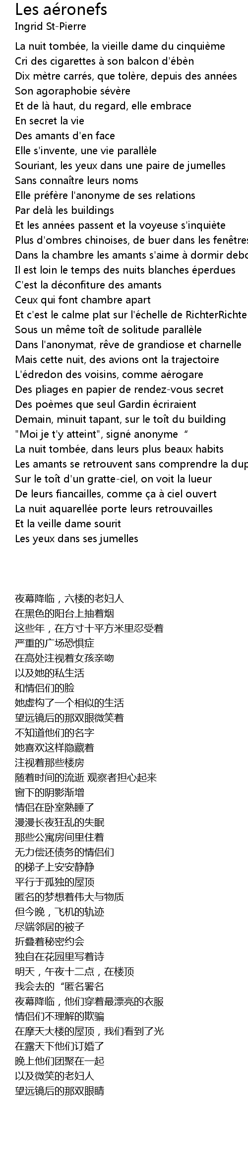 | Song | Les aéronefs |