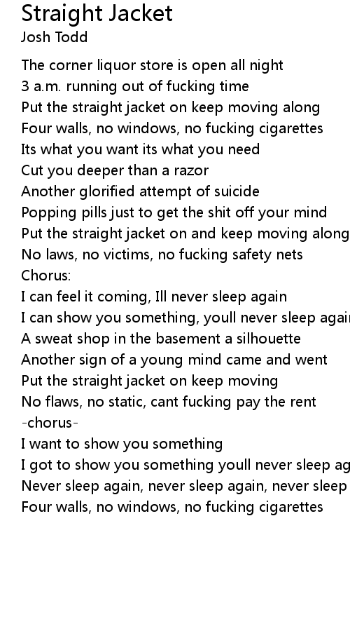 Put the straight jacket on keep moving along |