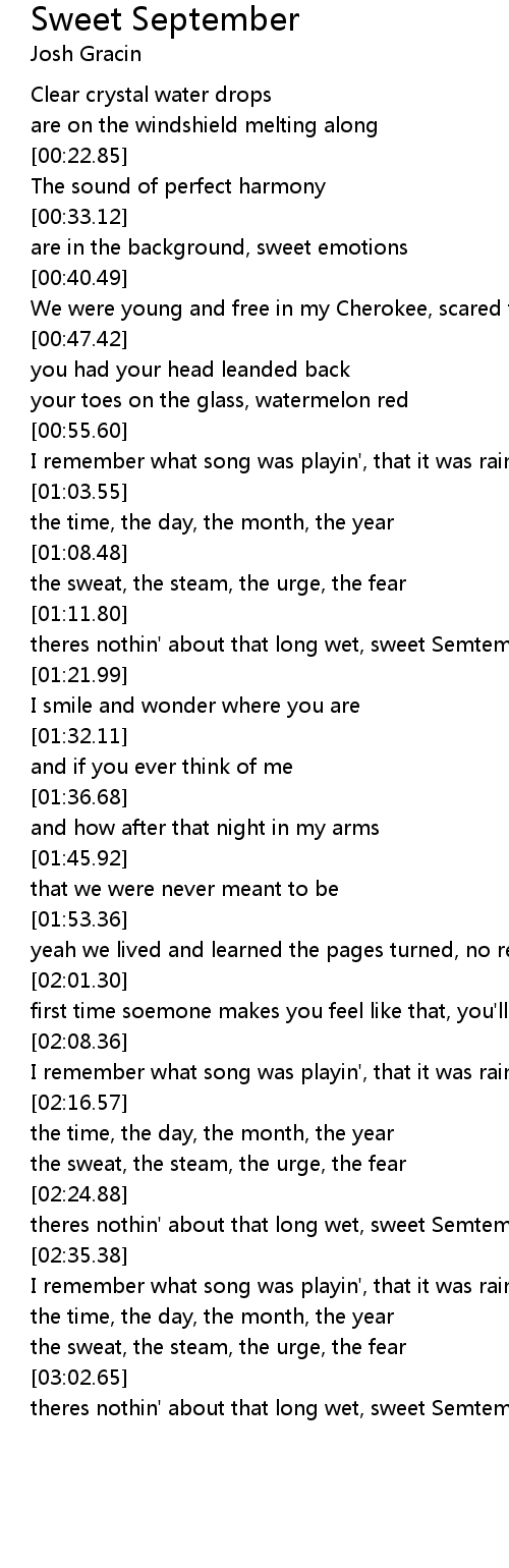 theres nothin' about that long wet, sweet Semtember, I dont remember |