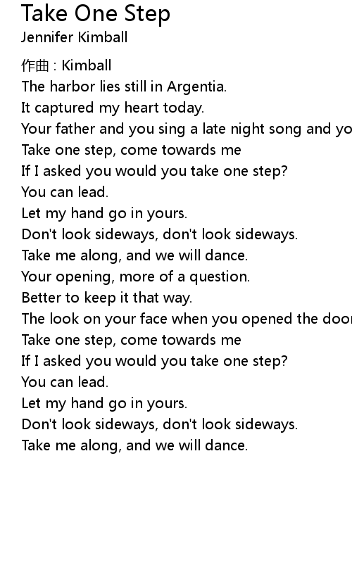 | Song | Take One Step |