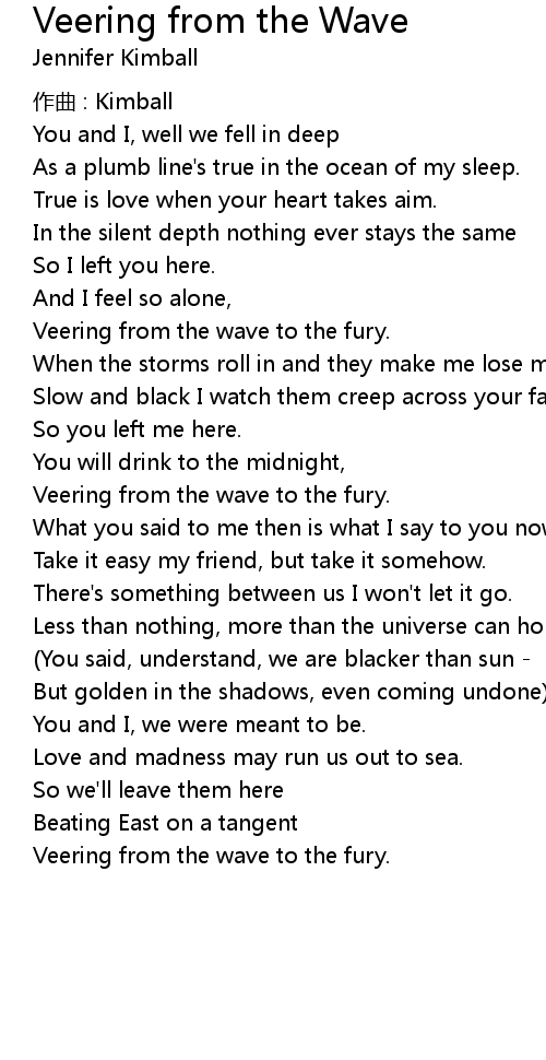 | Veering from the wave to the fury. |