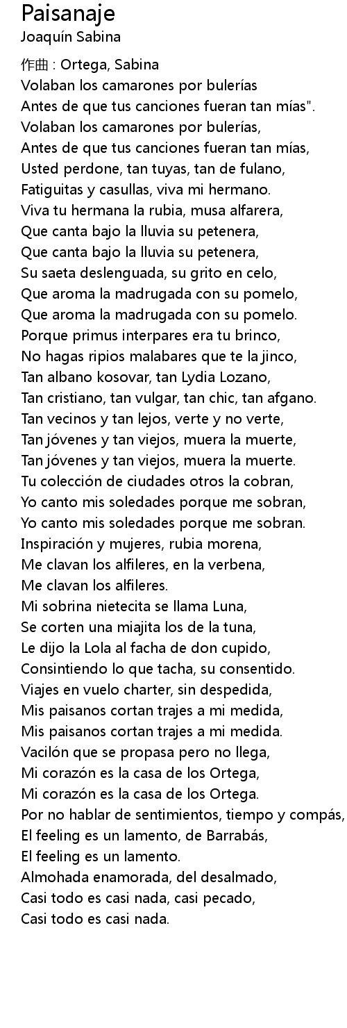 | Por no hablar de sentimientos, tiempo y compás, | |