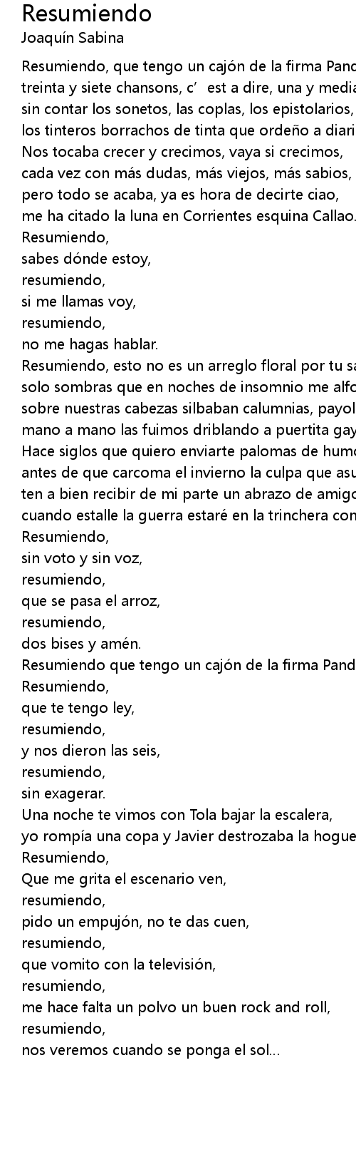 | Song | Resumiendo |