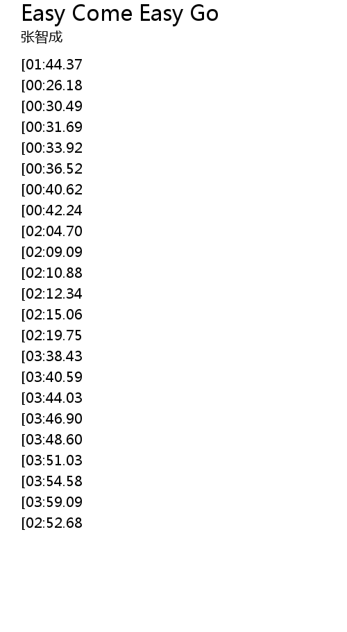 | [04:14.85][03:48.60][02:38.27][01:17.54] | Easy Come. Easy Go |