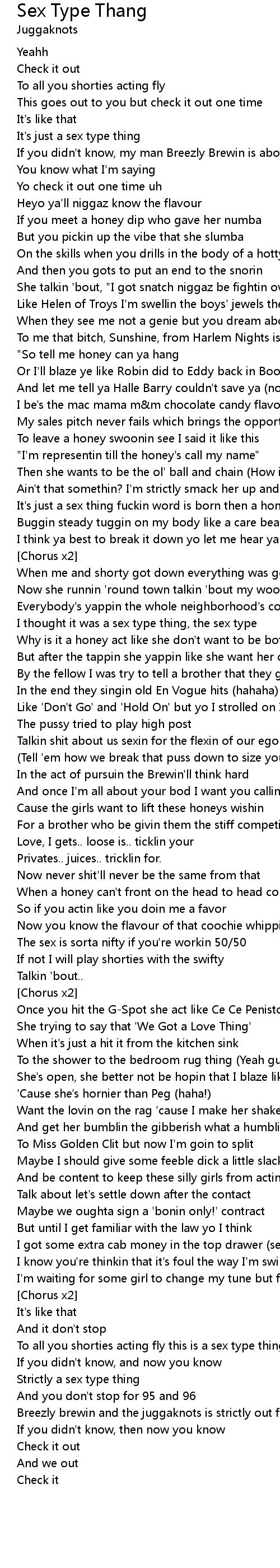 Breezly brewin and the juggaknots is strictly out for that sex type thing |