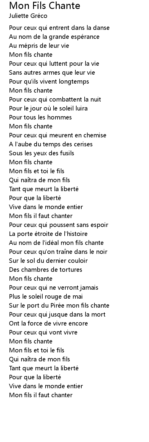 | Song | Mon Fils Chante |