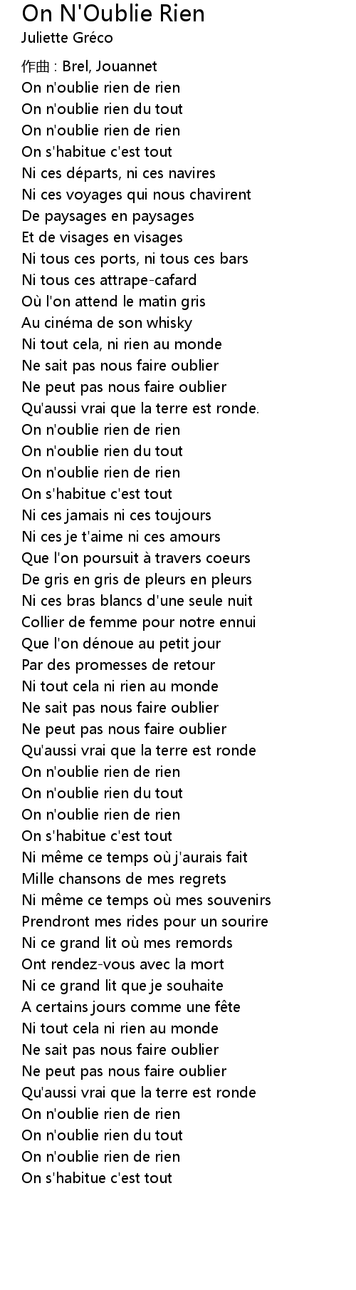 | Song | On N'Oublie Rien |