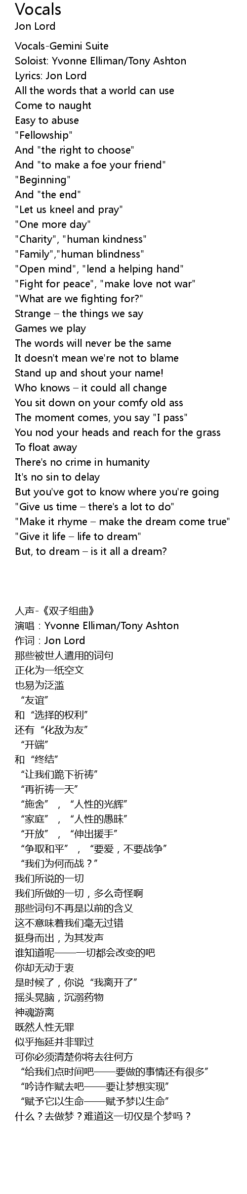 | [00:10.000] | Soloist: Yvonne Elliman Tony Ashton |