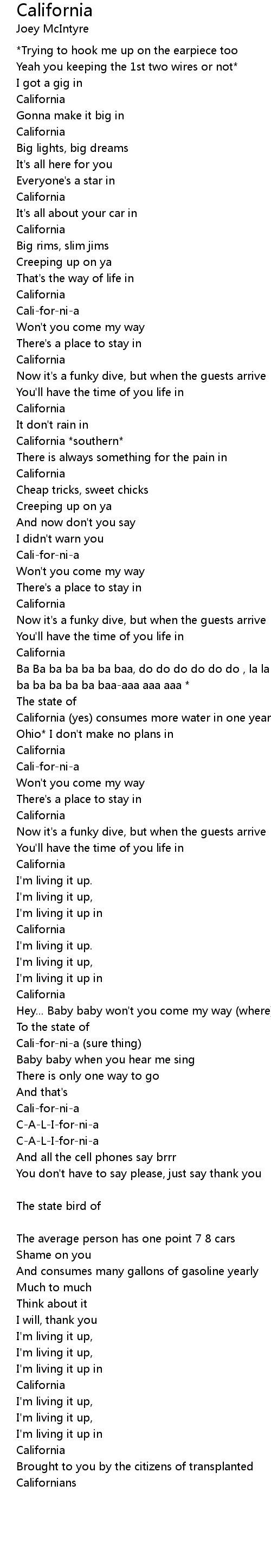 Cali-for-ni-a (sure thing) |