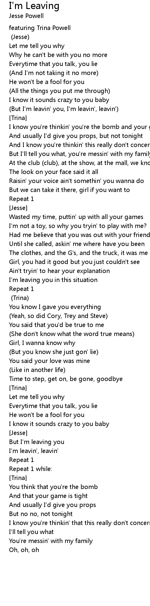 I'm leavin', leavin' |