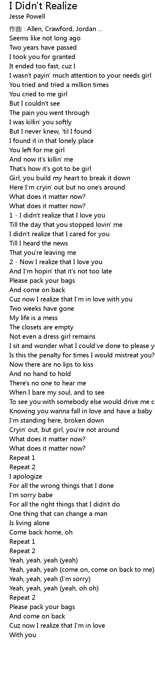 | Song | I Didn't Realize |