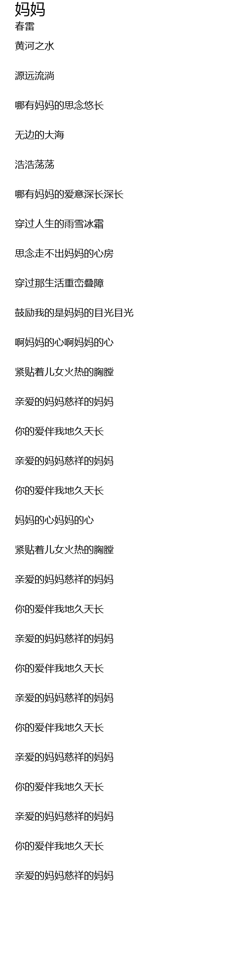 妈妈 ma ma Lyrics
