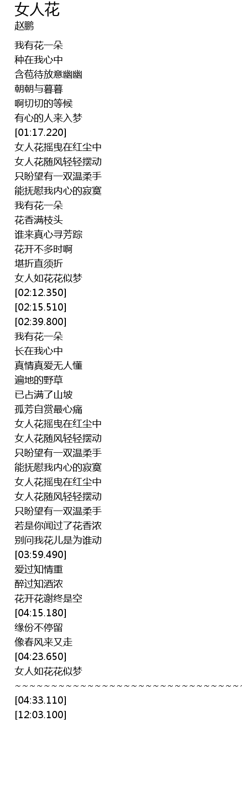 | [03:34.420] | 女人花摇曳在红尘中 |