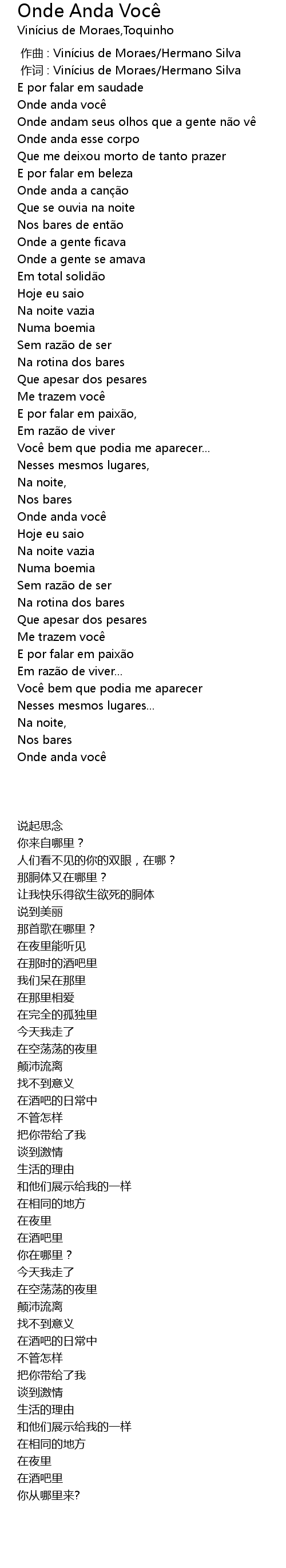 | [00:01.000] | 作词 : Vinícius de Moraes/Hermano Silva |