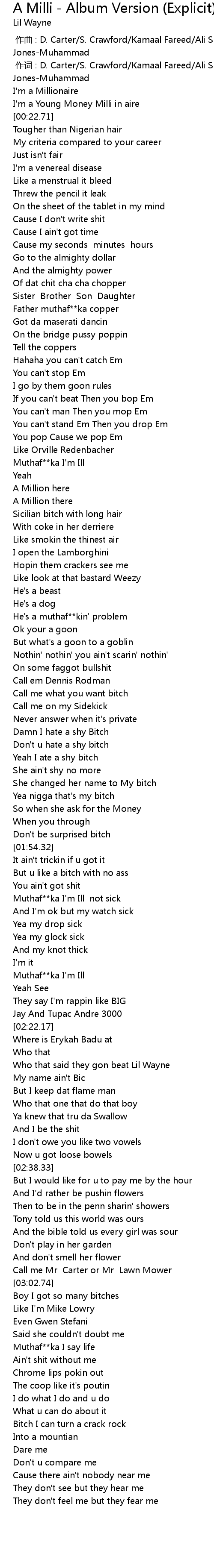 | [00:20.79] | I' m a Young Money Milli in aire |