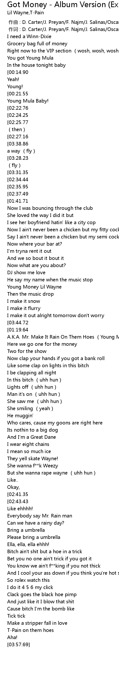 | [01:21.86] | A. K. A. Mr. Make It Rain On Them Hoes Young Money |