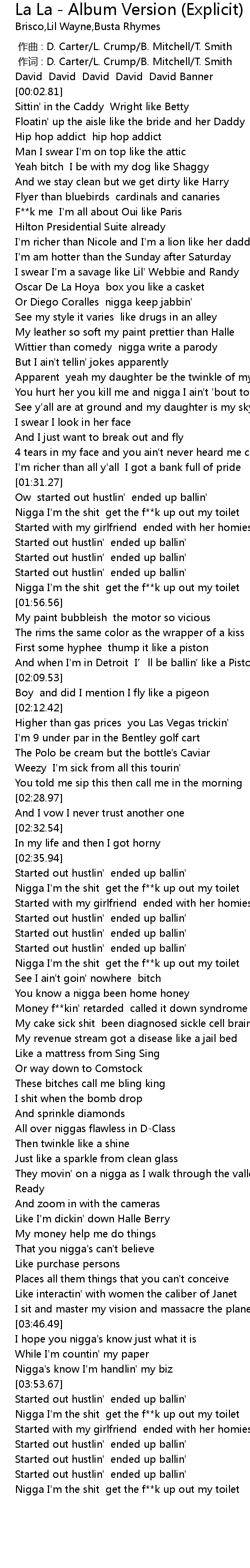 | [03:58.59] | Nigga I' m the shit get the f k up out my toilet |