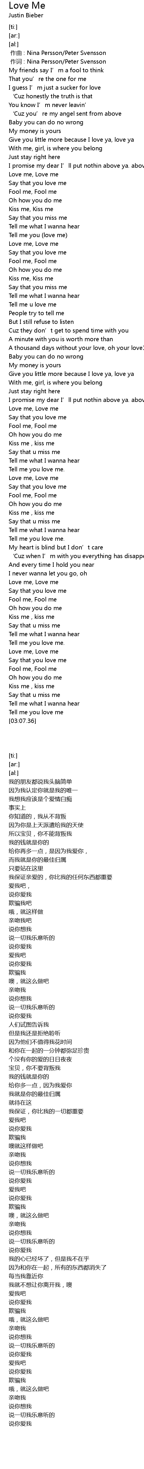 | [02:36.14] | Love me, Love me |