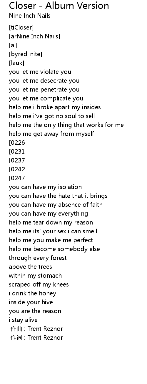 | [00:00.000] | zuò qǔ : Trent Reznor |