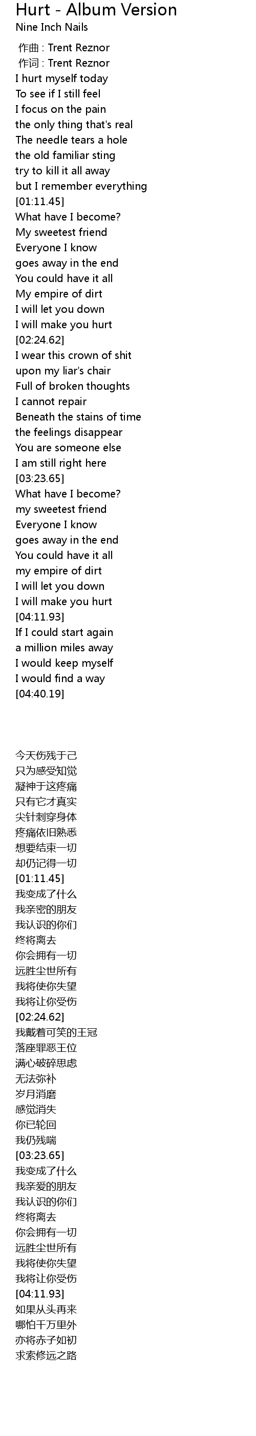 | [00:01.000] | 作词 : Trent Reznor |