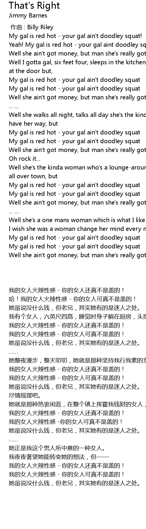 | [01:31.30] | My gal is red hot your gal ain' t doodley squat |