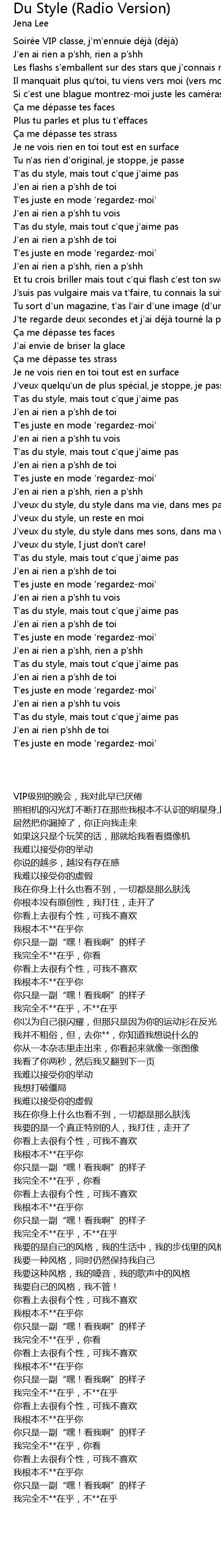 | [02:54.72] | T' as du style, mais tout c' que j' aime pas |