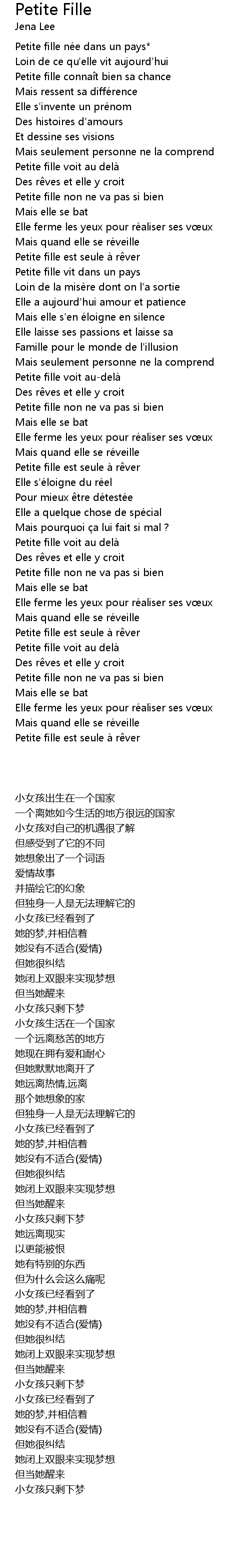 | [02:27.448] | Petite fille non ne va pas si bien |