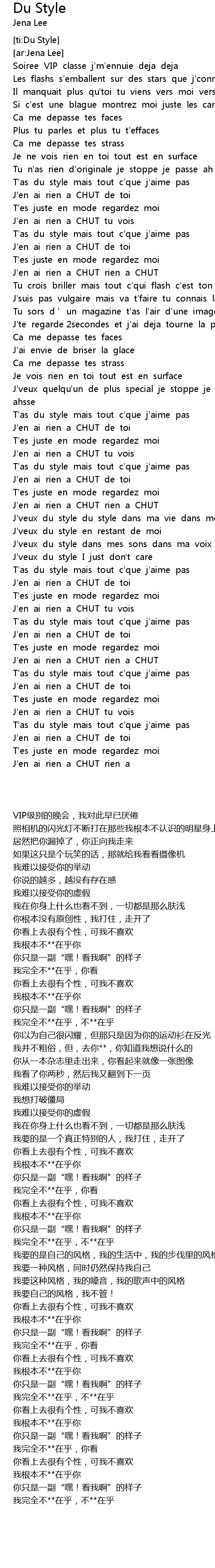 | [00:59.46] | T'as du style mais tout c'que j'aime pas |