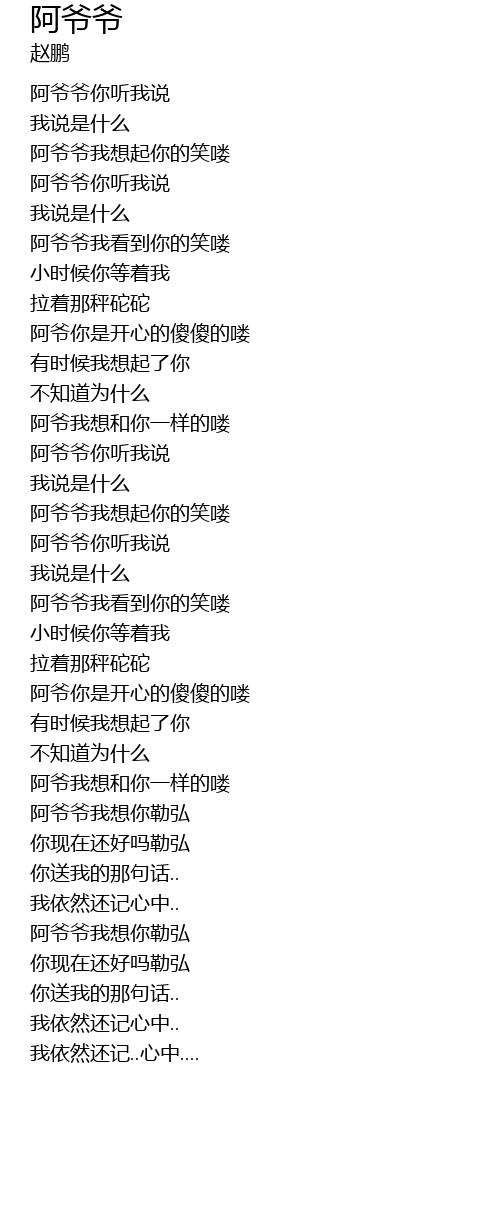| [00:39.35] | 阿爷爷我想起你的笑喽 |