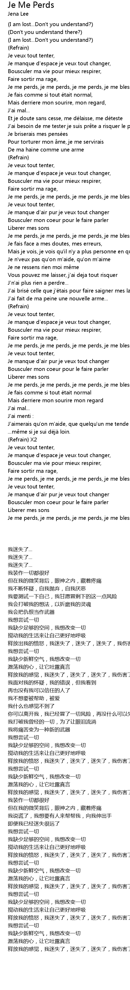 | Je me perds, je me perds, je me perds, je me blesse. | |