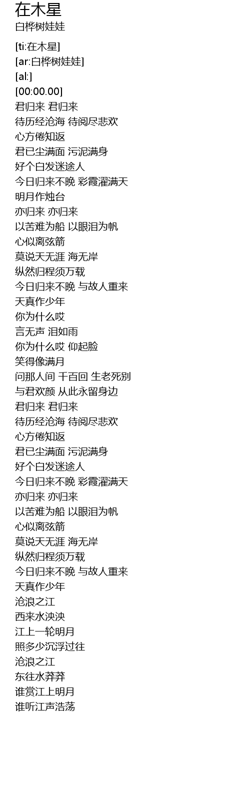 | Artist | 白桦树娃娃 |
