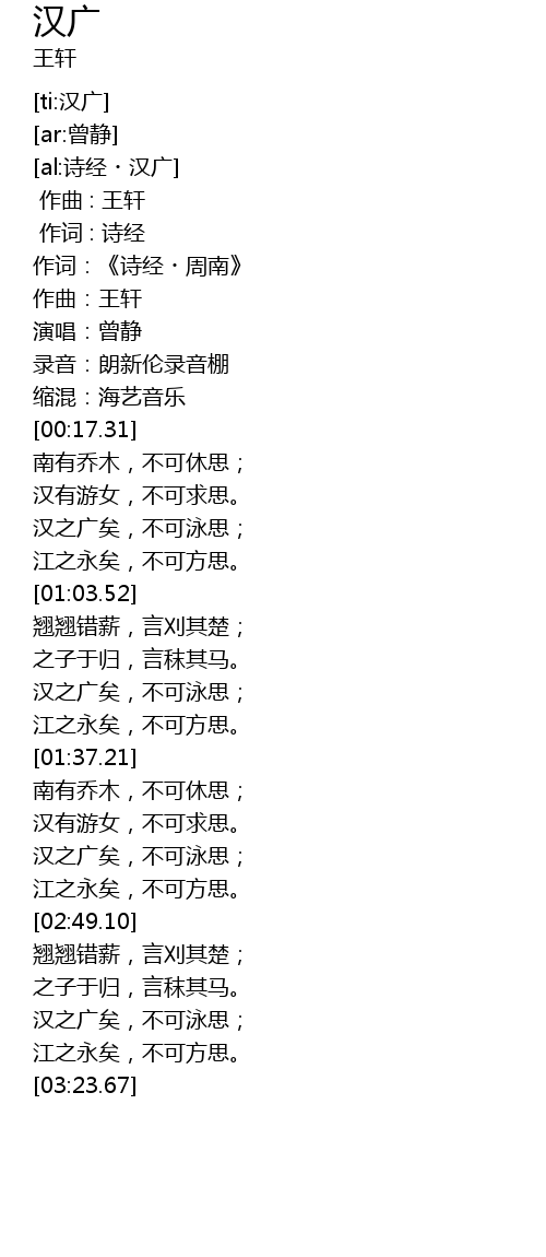 | [00:35.48] | 汉有游女,不可求思。 |