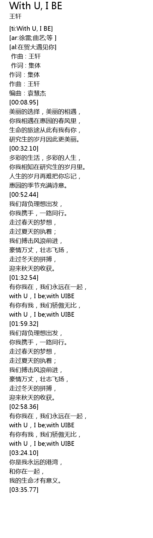 | [03:16.42] | with U, I be with UIBE |