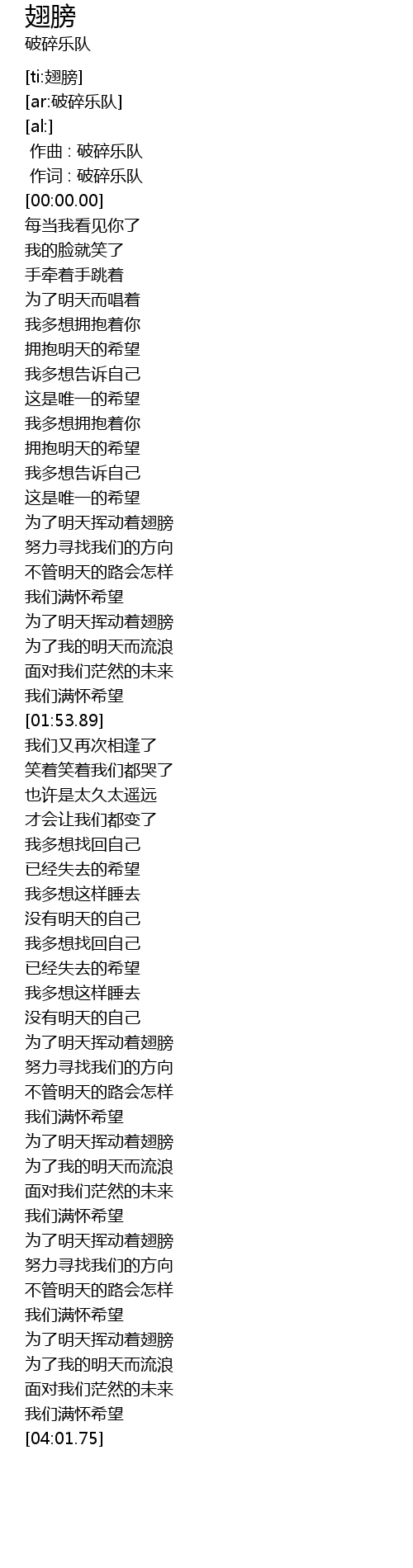 | [01:37.38] | 为了明天挥动着翅膀 |