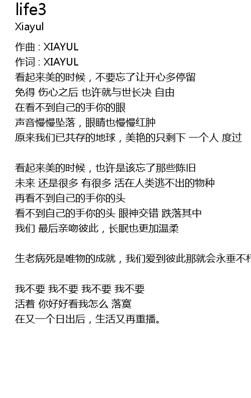 | 作词 : XIAYUL | |