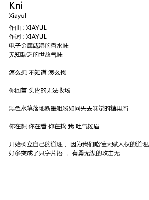 | 作词 : XIAYUL | |