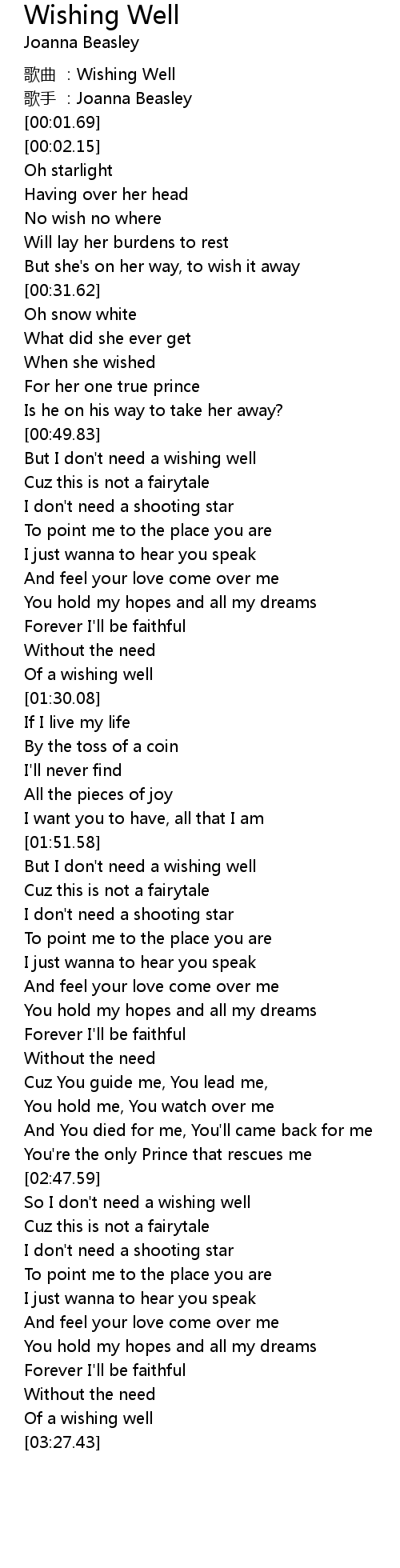| [00:01.13] | gē shǒu : Joanna Beasley |