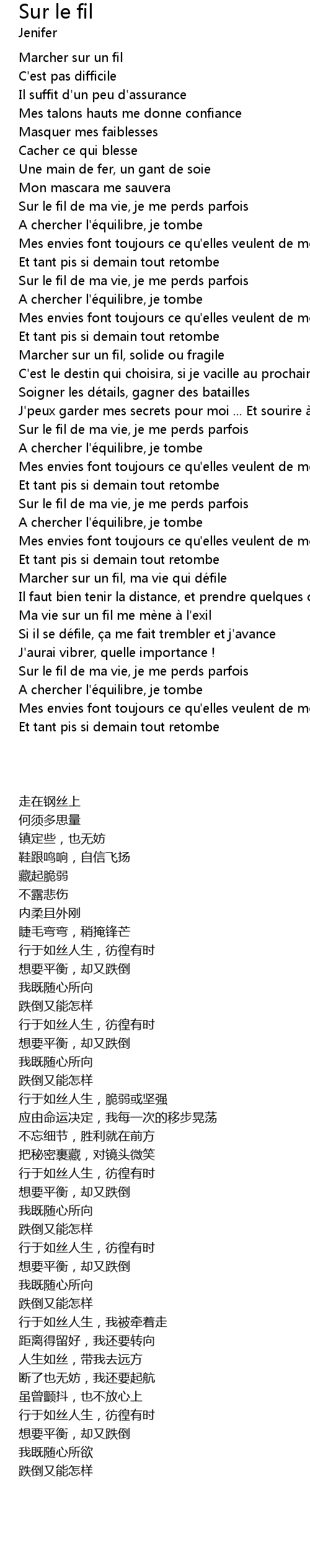 | [01:50.47] | Sur le fil de ma vie, je me perds parfois |