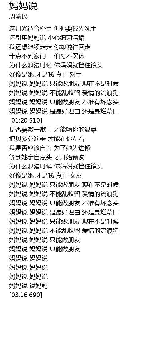 | [03:01.370] | 妈妈说 妈妈说 |