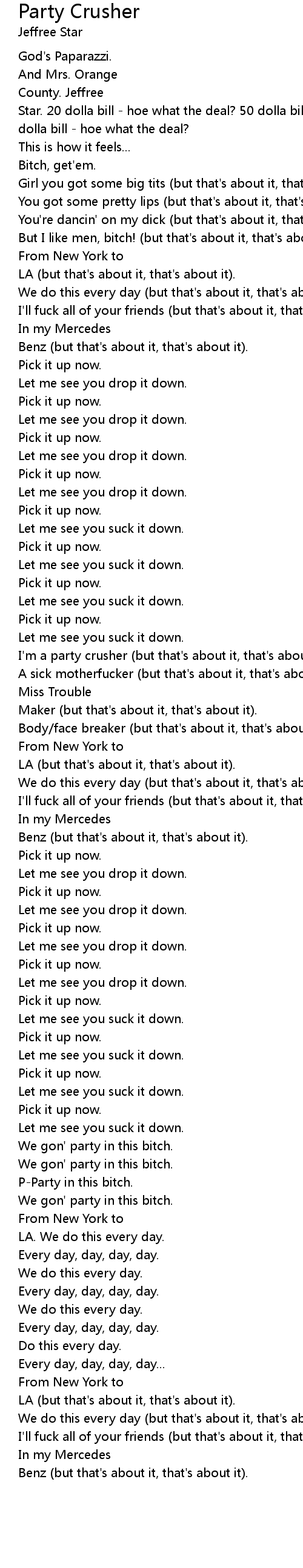 I'm a party crusher (but that's about it, that's about it). |
