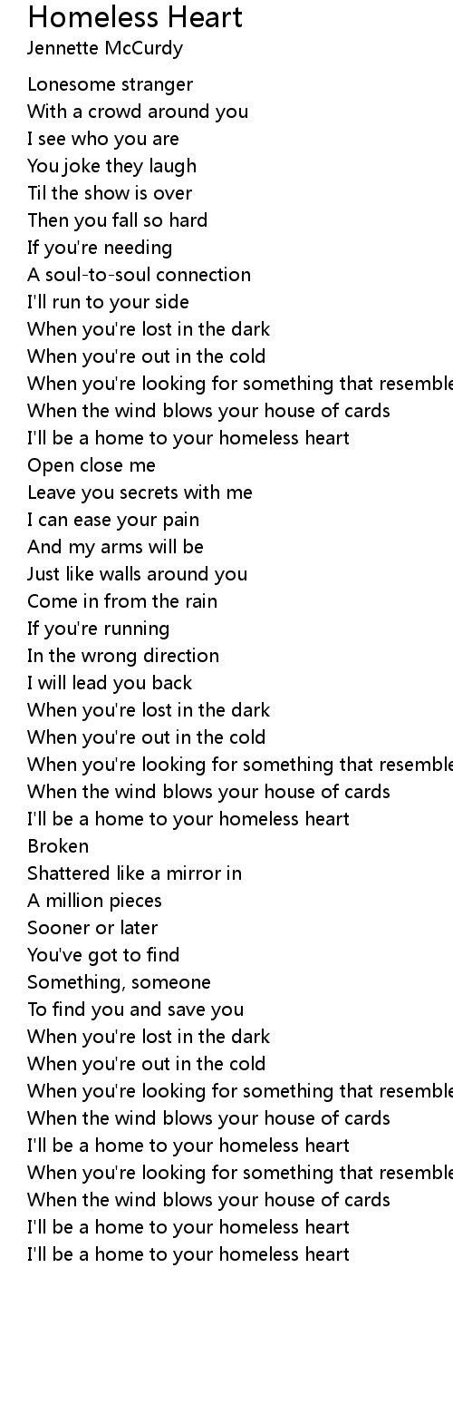 I'll be a home to your homeless heart |