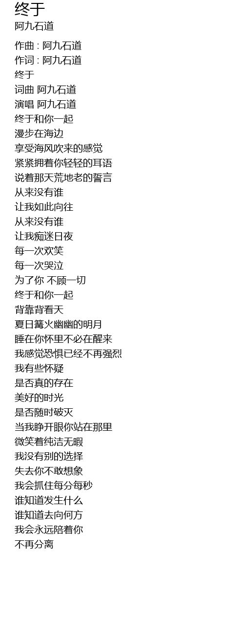 | 作词 : 阿九石道 | |