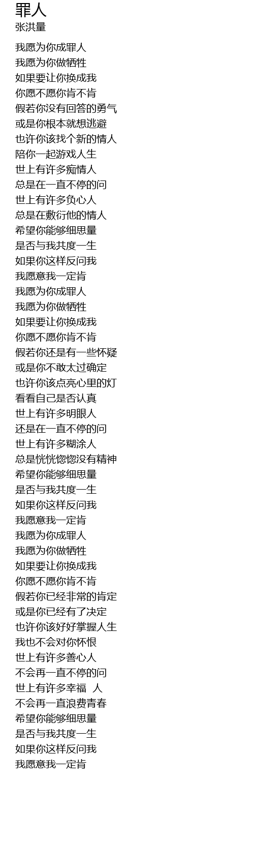| [00:17.390] | wǒ yuàn wèi nǐ chéng zuì rén |