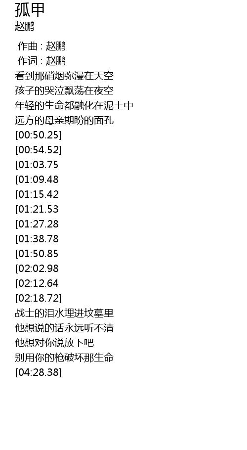 | [00:01.00] | 作词 : 赵鹏 |