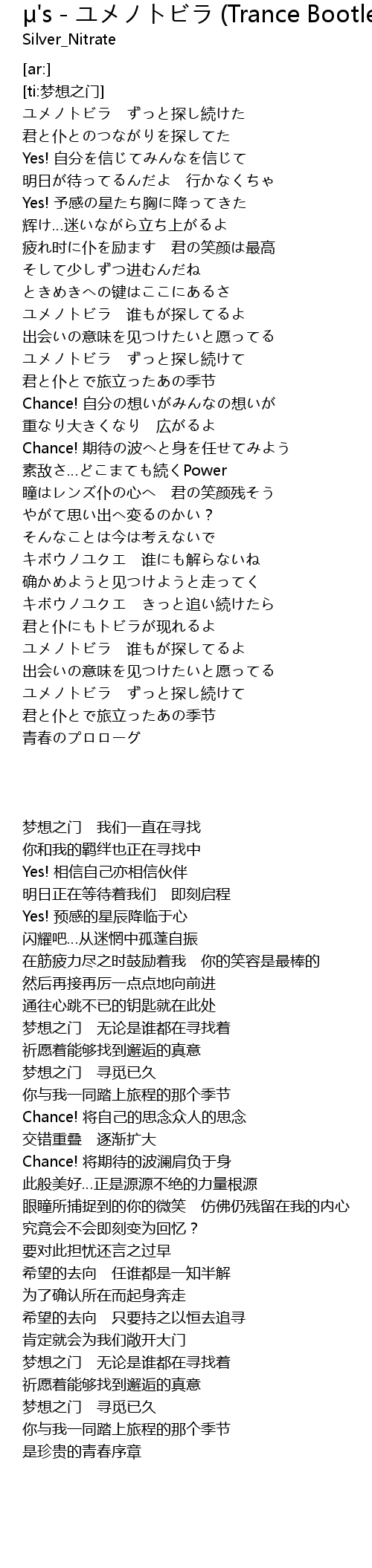 | [00:01.41] | ユメノトビラ ずっと探し続けた |