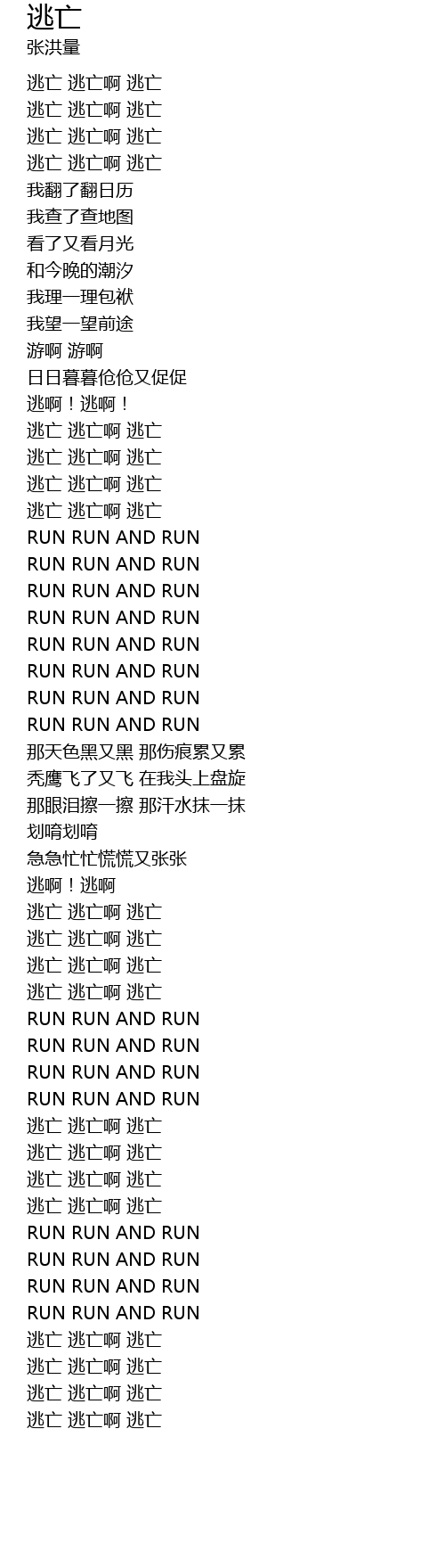 | [01:32.93] | 逃亡 逃亡啊 逃亡 |