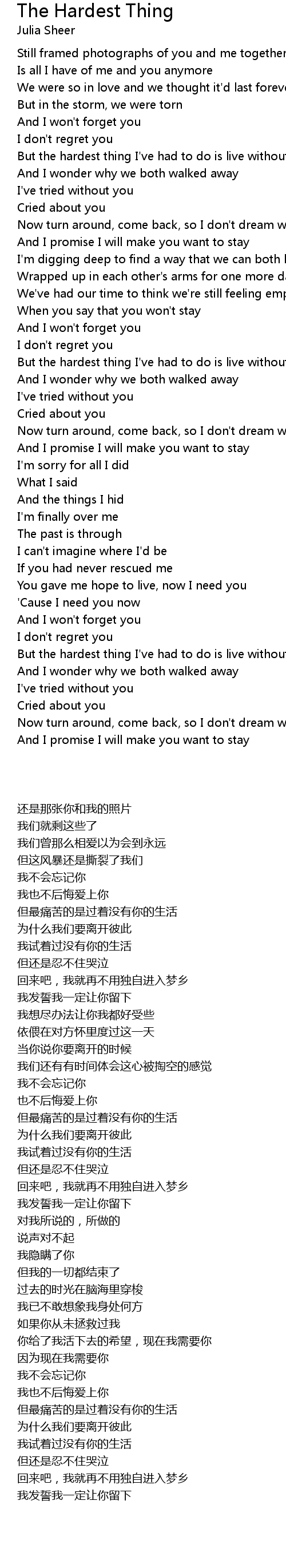 But the hardest thing I've had to do is live without you |