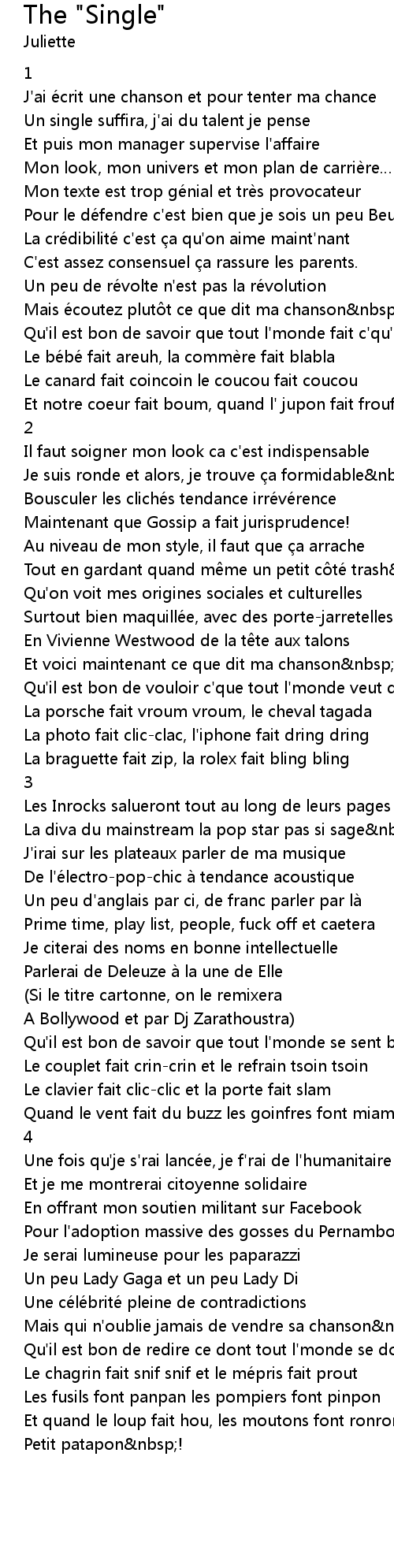 Mais écoutez plutôt ce que dit ma chanson :