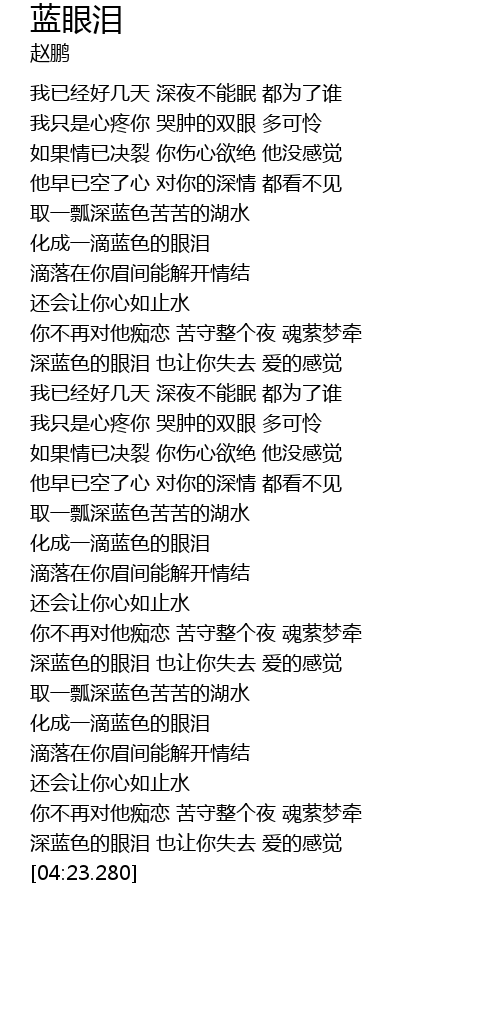 | [03:49.180] | 化成一滴蓝色的眼泪 |
